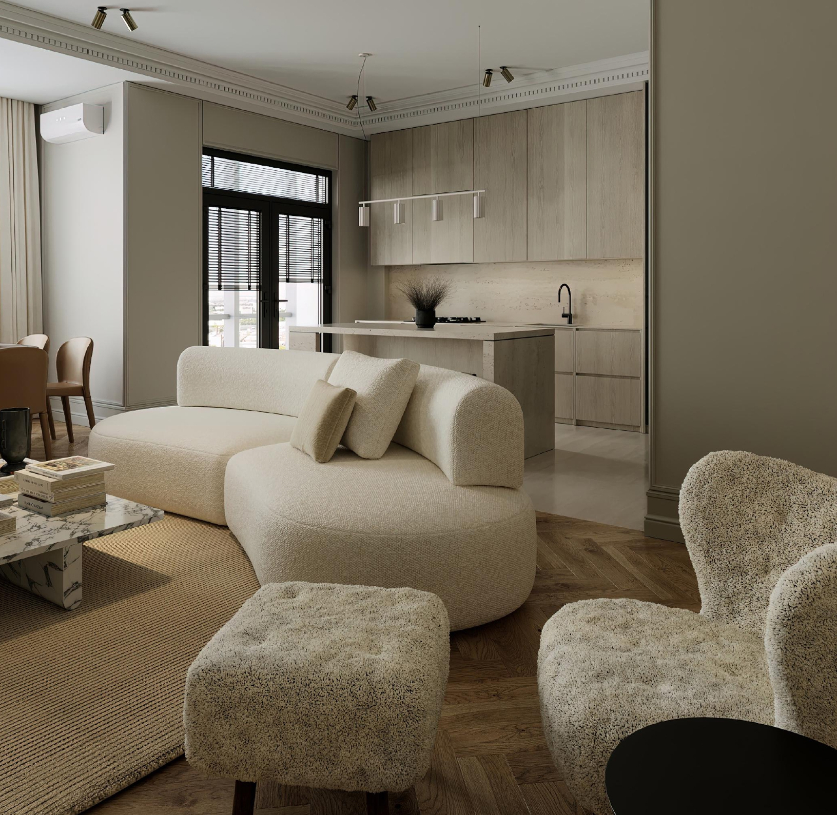 Мансардная резиденция 255,1 м² — вершина клубного формата. Три изолированные спальни для семьи. Парадная гостиная для особых событий и большая кухня-студия — центр повседневной жизни. Архитектура мансарды дарит объём, свет и индивидуальность. Главная жемчужина — открытая терраса 38,7 м²: продолжение дома под небом для ужинов на закате, тренировок или зелёного сада. Городская вилла в камерной атмосфере.